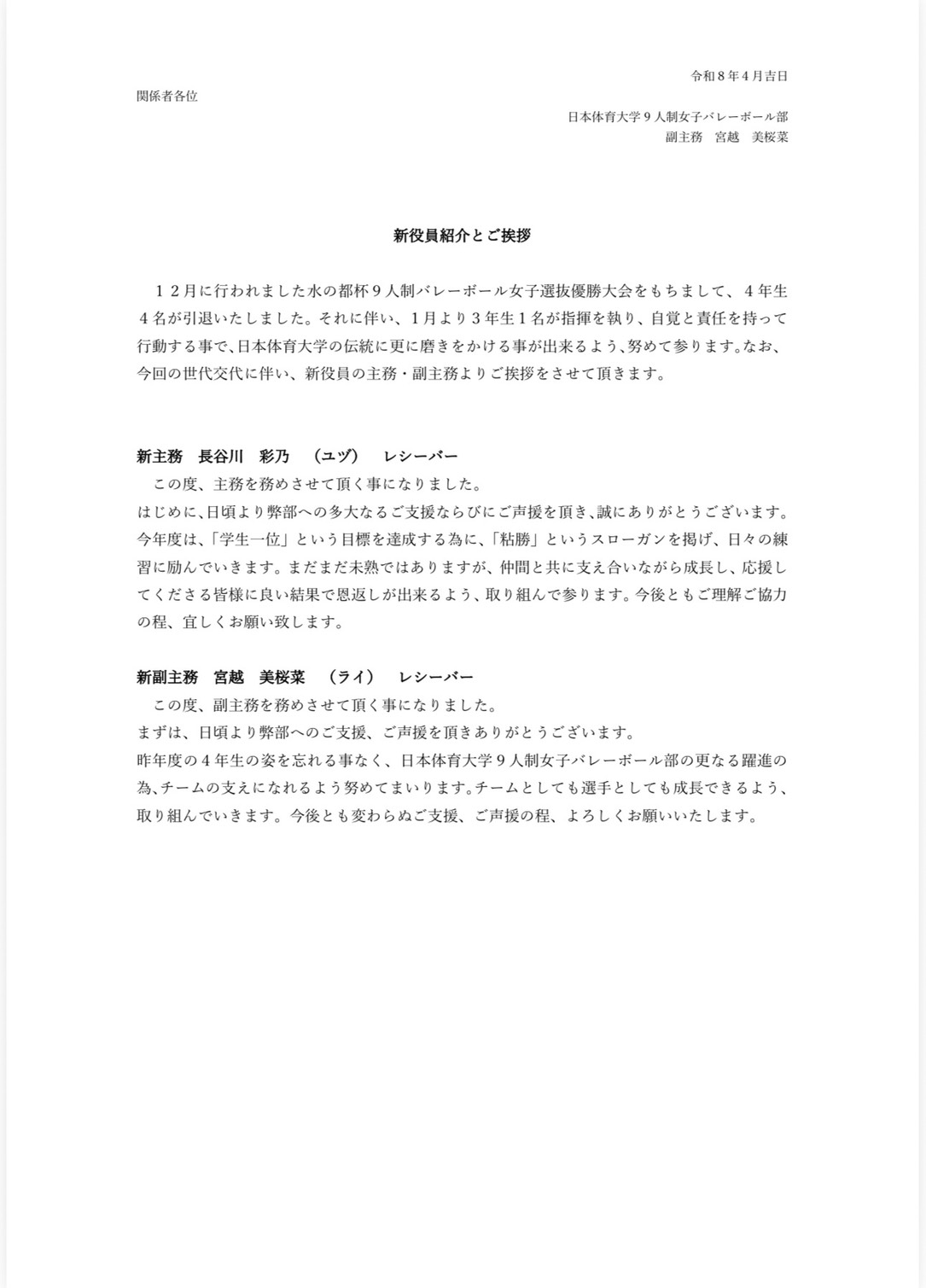 新役員紹介とご挨拶